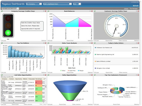 Pegasus Dashboards: Displaying key information from the Opera 3 accounting software in real time, the Dashboards give you an accurate and up to the minute visual representation of the current state of your business. Having this data in front of you enables you to make right decisions at the right time.